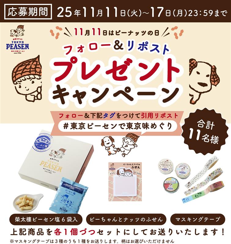 榮太樓總本鋪 X公式アカウントにて、“ピーナッツの日”を記念して東京ピーセンよりプレゼントキャンペーンを開催いたします。
