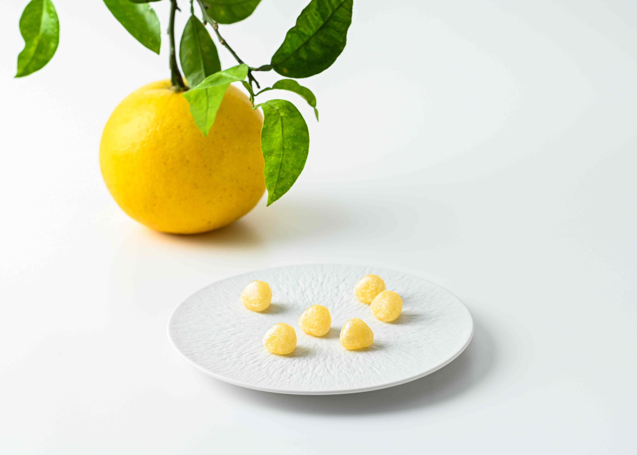 持続可能な農業を目指し実行している宮崎県の農業団体“緑の里りょうくん”にて、農薬節制栽培でつくられるグレープフルーツ「月夜実」を使用。お月様のような見た目と、宮崎にゆかりの深い日本神話における農耕の神様「ツクヨミノミコト」にあやかり名付けられました。国内産ゆえ輸送時間が短いため、樹上で完熟間近まで養分を蓄えた瑞々しい果実は、酸味の奥に甘みがあり、まろやかな味わいが特徴です。