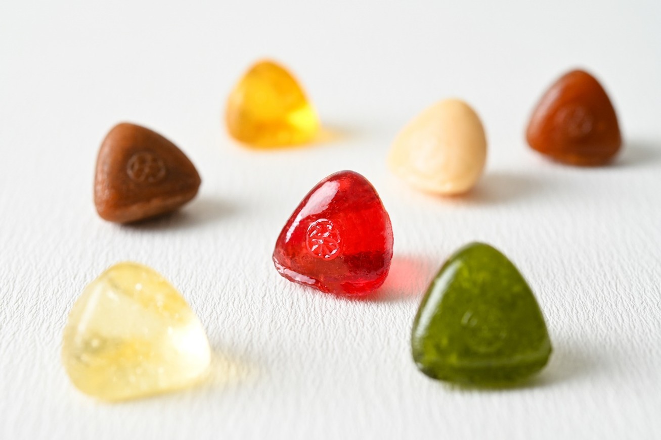 高純度で雑味の無い白ざら糖を、高温の直火で煮詰めることでうまれる有平糖(あるへいとう)。江戸の庶民には高価だった有平糖をもっと気軽に…と、創意工夫から生まれたのが梅ぼ志飴です。以来有平糖の技術を基に、黒飴、抹茶飴、紅茶飴と続き、平成に入り、のど飴やバニラミルク飴が加わりました。また、国産の果物を使用した無香料・無着色の「果汁飴」シリーズも登場し、定番品は全11種類のラインナップを揃えています。