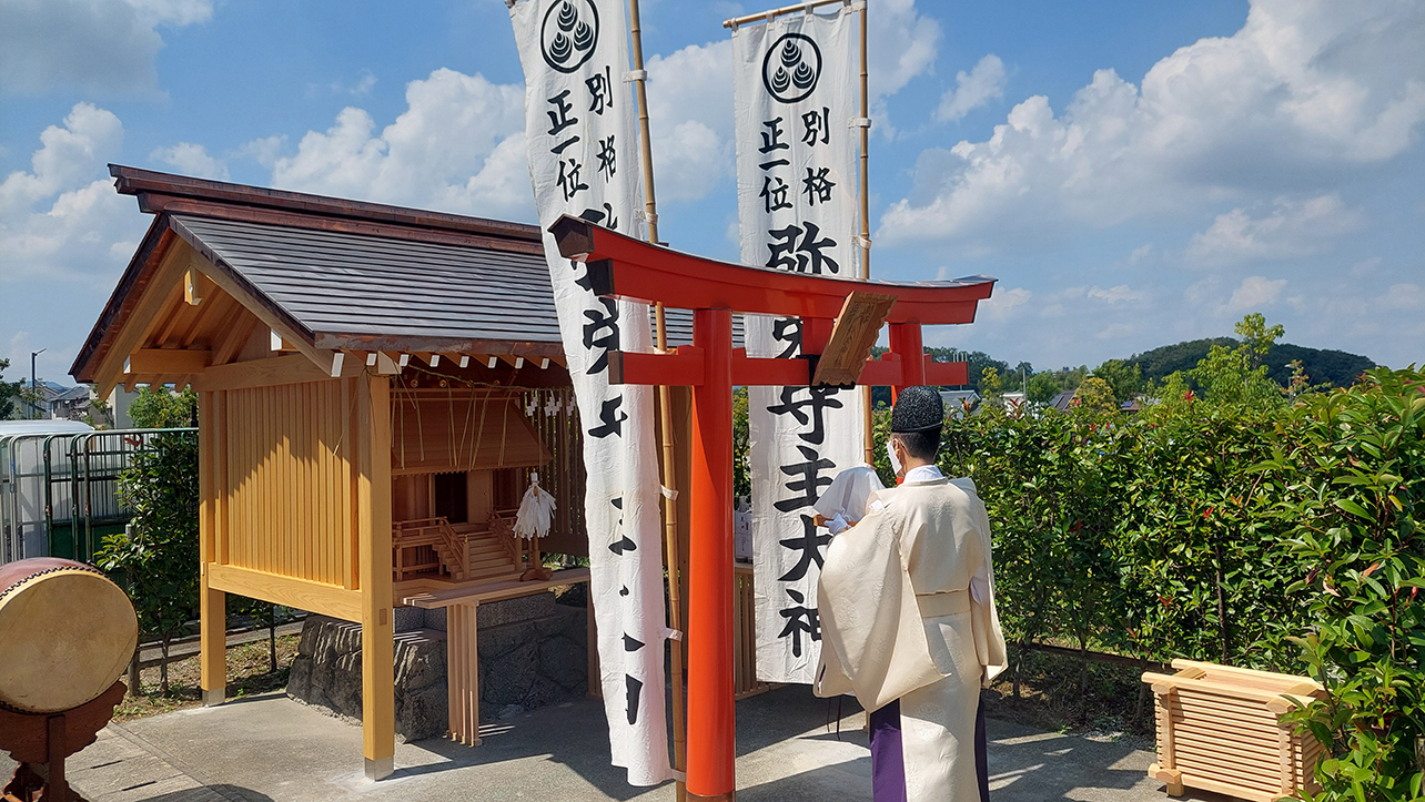 先日9月9日、神職を招き新しい社殿に御神体を移す「還御祭(かんぎょさい)」を執り行いました。9月9日は重陽の節句で、家族の無病息災や子孫繁栄、不老長寿を願い、祝いの宴を開いたことが起源とされ、まさに新しい社殿を迎えるにふさわしい日となりました。