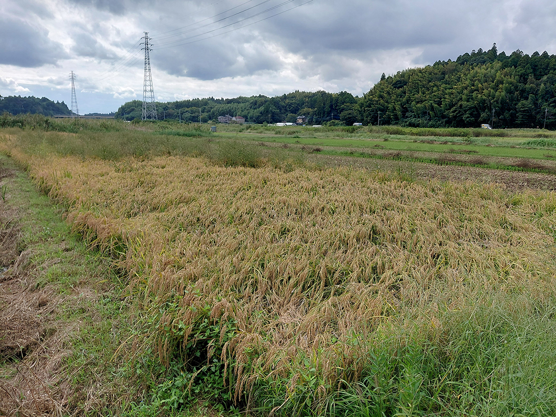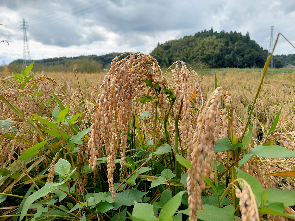 田んぼの面積は昨年の約1.5倍。冬に撒いた堆肥の効果もあってか、稲穂の実りは一段と豊かに感じられました。酷暑の影響が心配されましたが、収穫量は例年並みとのこと。ただし一部の畑ではカメムシの被害も見られたそうです。