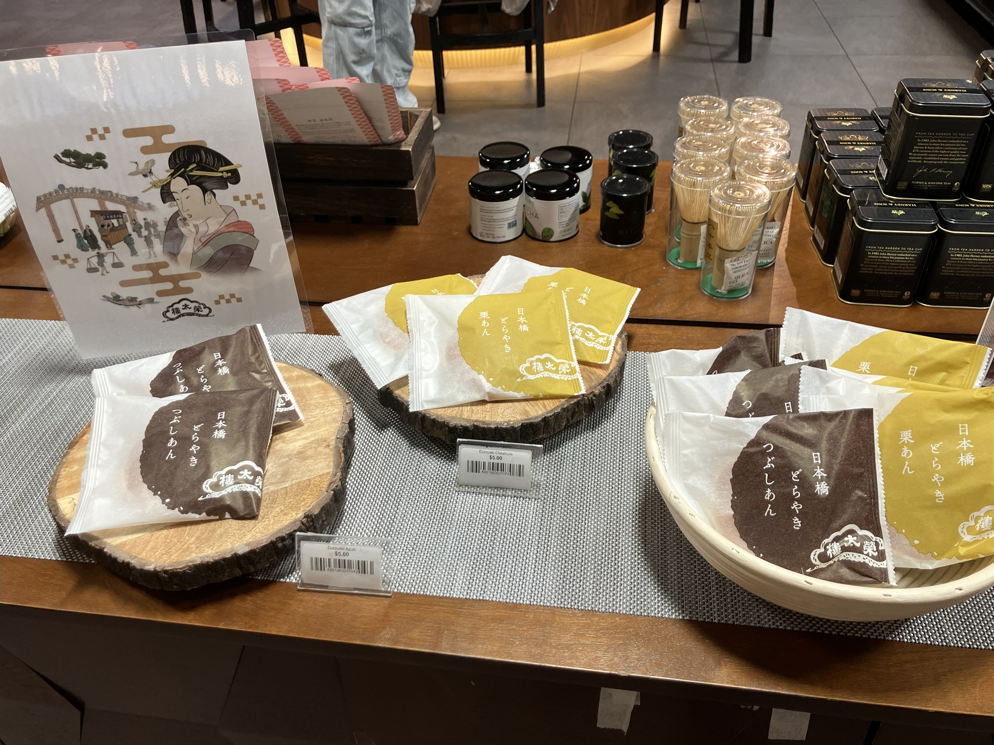 ▶現地では日本橋どらやき(つぶしあん)と季節限定「栗あん」二種類を展開。