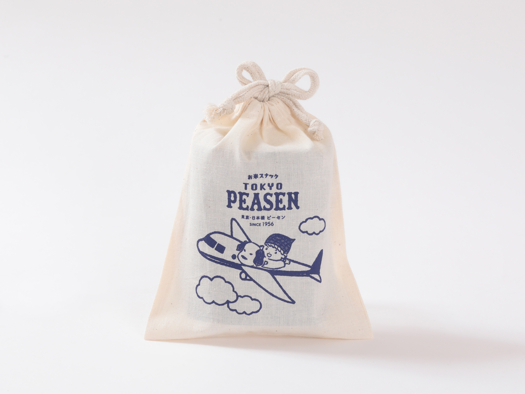 また、パッケージにはANA FESTA限定の特別デザインを採用。東京ピーセンのマスコットキャラクター、ピーちゃんとナッツが飛行機に乗ったイラストをあしらった、オリジナルのコットン製巾着に詰め合わせました。旅の楽しさを感じさせるデザインで、思わず持ち歩きたくなるような、旅のあとも楽しめるここでしか手に入らない一品です。